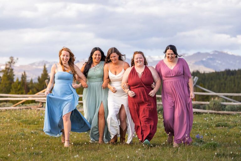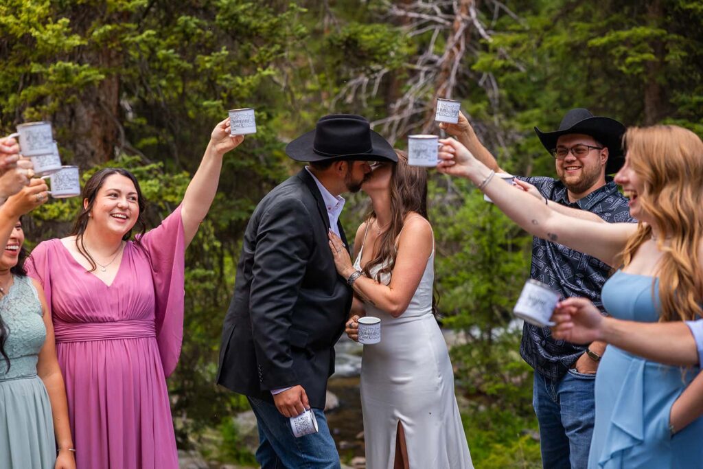 With their closest friends (and a flute player in tow!), they hiked up into the mountains toward a rocky lookout overlooking Meadowlark Lake for their wedding ceremony. Hiking boots on, dresses flowing, laughter echoing through the trees, it felt less like a formal event and more like an experience unfolding in real time.